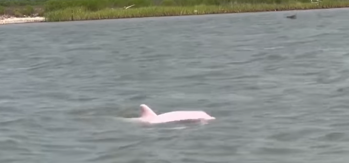Um homem conseguiu flagrar uma espécie rara de golfinho cor-de-rosa durante uma pescaria, nas águas próximas ao Golfo do México , na Louis...